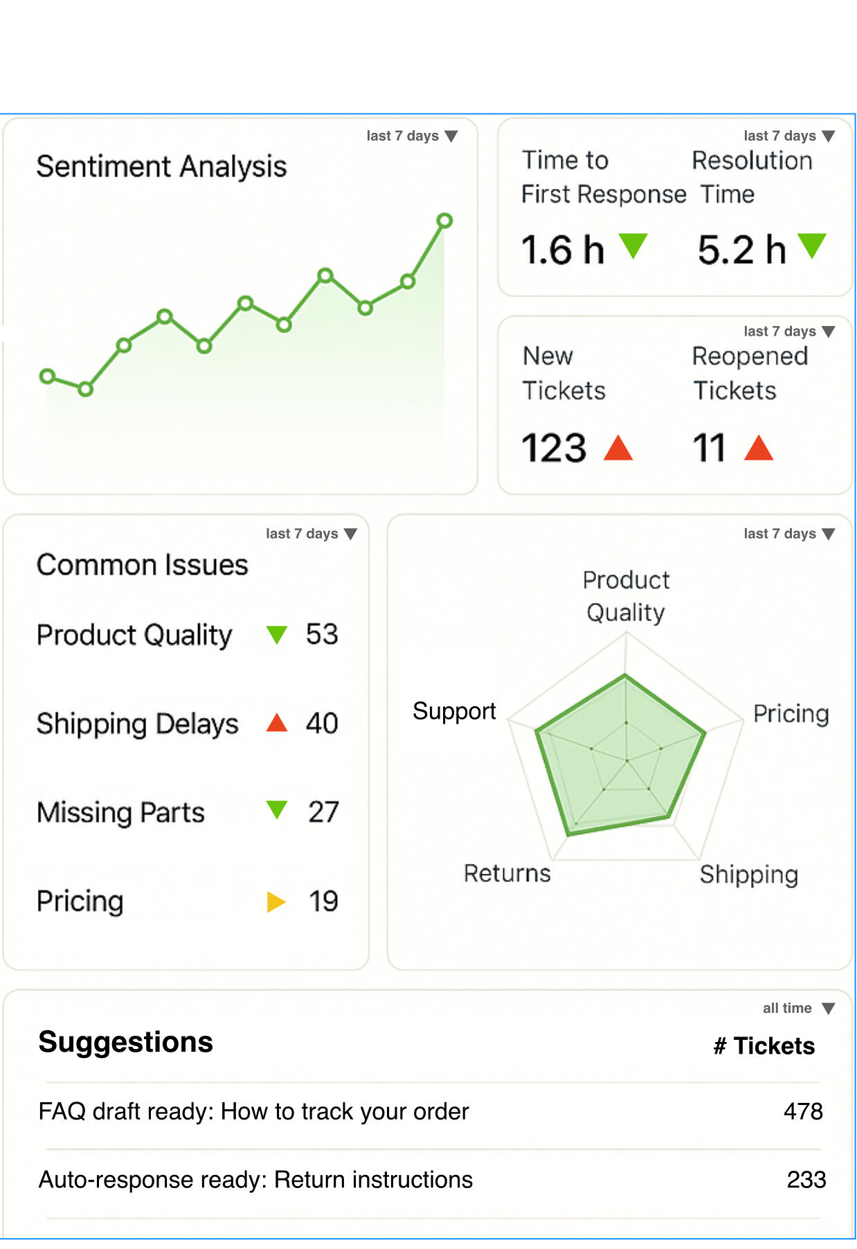 See what’s causing churn, refund requests, and delivery complaints — tracked over time.